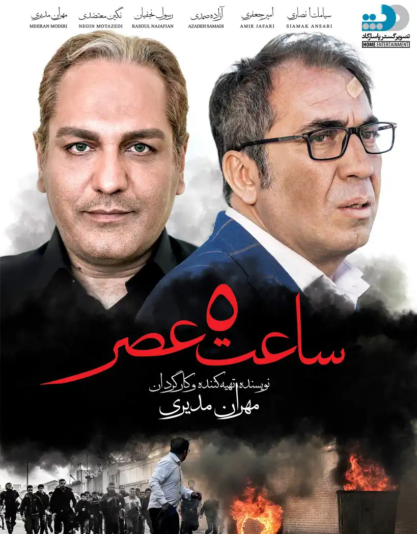 ساعت ۵ عصر فیلمی درام به کارگردانی مهران مدیری محصول ایران سال 1398 با حضور بازیگران مشهور امیر جعفری، آزاده صمدی، مهران مدیری، نگین معتضدی و سیامک انصاری است.